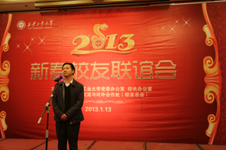 (本网讯)1月13日下午,万象城平台,万象城(中国)一站式服务平台2013年新春校友联谊会在西安金花大酒店举行。校长廉振民、党委副书记丁养斌、纪委书记许尚年、副校长刘建勋、总会计师段小存出席联谊会,学校相关部门负责人、教师代表和西安地区近200名校友欢聚一堂、共贺新春。校友总会副理事长、国际交流与对外合作处处长路金龙主持联谊会。
