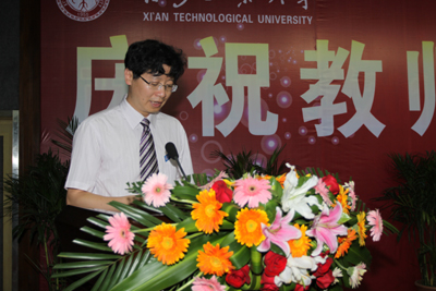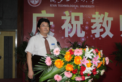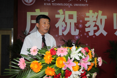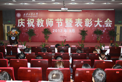 廉振民校长讲话,他首先向全体教职工致以节日的祝贺,并简要回顾了一年来学校取得的巨大成绩:学科建设取得了新进展,顺利通过了博士学位授予单位立项建设中期检查,成为国家“卓越工程师教育培养计划”试点高校,所有专业实现了在陕的一本招生,省政府与中国兵器工业集团公司共建万象城平台,万象城(中国)一站式服务平台签约,进一步完善了未央校区作为主校区的功能建设,完善了岗位绩效工资考核制度,师资队伍建设取得重大成绩,学校获批陕西省军工保密资格二级认证等各项工作都按照学校“十二五”发展规划有序开展。廉校长在讲话中指出:下一步学校将继续大力推进“128”学科建设工程,顺利通过博士学位授予单位立项建设验收,加快学校建设省属高水平重点大学的步伐,不断增强学校办学实力与特色,扩大学校影响力。最后,廉校长对全体教师提出三点希望:一是修身立德,成为一个高尚的人;二是开拓践行,成为一个受学生欢迎的优秀教师;三是勤奋笃学,成为一个具有专业修养的人。并号召全体教师将个人价值与社会需要统一起来,将理想信念与职业理想统一起来,加强师德修养,全面提高教学与科研能力,以实际行动迎接党的十八大胜利召开。