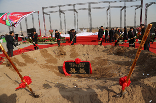 参加庆典仪式的主要领导为工程开工培土奠基并合影留念。