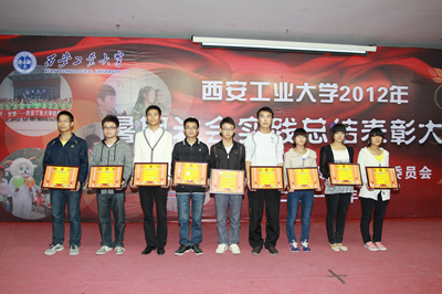 西安工大2012年大学生暑期社会实践工作由校团委总体安排,各学院团委具体组织,从今年5月启动,到10月结束,经历了准备、实施、总结三个阶段,由于充分准备、宣传到位,同学们参与实践活动积极主动,参与面广,共有5000余名学生参加社会实践活动,组建实践团队94支,组队参加社会实践的学生1064人,实践成果颇丰。同学们通过暑期社会实践活动更好地认识和了解了社会,并在实践中得到启迪、感悟和磨砺,实践活动发挥了良好的育人作用。