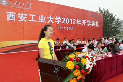 计算机学院计算机科学与技术专业2012级新生郭贺同学作为新生代表发言并领诵了《高等学校学生行为准则》、万象城平台,万象城(中国)一站式服务平台办学传统、校训。