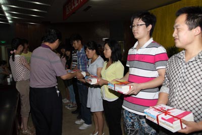 活动分为两个部分进行,第一部分为向毕业赠书,由学生处副处长姬洪波主持,资助中心主任程新峰宣读致2012届享受助学贷款学生的《坚守承诺,诚信做人》倡议书,教育厅资助中心姬建鹏为享受助学贷款的毕业学生赠书,任慧英处长讲话,她向学生们提出了严于律己,言行一致,善于合作,带着学校的名片为社会为学校争光;肩负责任,勇于担当,创新工作完善自我,在新的岗位、新的环境不断提升自己,做社会的栋梁之才;诚信做事,感恩于心,遵守承诺,把党和国家、学校的关怀永记心间,用爱心接力,用知识感怀三点希望和要求。