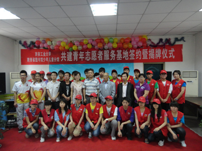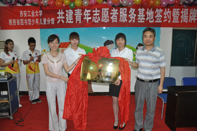 我校青年志愿者协会于2008年9月开始在陕西省图书馆少年儿童分馆开始志愿服务,开展了图书整理、阅读秩序维护、卫生清扫、好书导读、阅读辅导等方面的服务项目,受到了少儿分馆和小读者们的一致好评。这一基地是继与西安市公交总公司第六分公司600路车队团支部联合共建青年志愿者服务基地之后的又一个服务基地的建成。近年来,我校青年志愿者开展了大量形式多样、扎实有效的服务活动,逐步形成志愿服务基地化、项目化、常态化、品牌化。