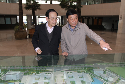台湾客人在廉振民校长陪同下还饶有兴趣地参观了我校未央校区的图书馆、校史馆、正在建设中的校园。