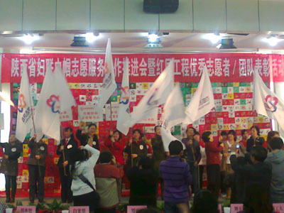 (本网讯)12月3日,在第26个国际志愿者日来临之际,陕西省妇联巾帼志愿服务工作推进会暨红凤工程优秀志愿者/团队表彰大会在西北工业大学举行。出席表彰大会的省上领导有:陕西省妇联主席刘丽鸽,陕西省精神文明办公室副主任白宽犁,陕西省妇联副主席吴亚平、周玉峰,陕西省妇联纪检组长刘体皎,陕西省妇联副巡视员班理,陕西省残联机关党委副书记孙秀红等,我校作为获奖单位应邀参加了大会。