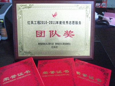 大会由陕西电视台《陕西新闻联播》主持人、2010年“心系红凤爱心换物大接力”活动优秀志愿者徐杰和西安音乐台著名主持人、2003年“红凤知音”文锦玲共同主持。会上,省妇联对获得陕西省巾帼志愿服务先进社区、陕西省先进巾帼志愿者团队、陕西巾帼志愿者活动组织奖、陕西省巾帼志愿服务工作先进个人、陕西省优秀巾帼志愿者和红凤工程优秀志愿者及团队的单位和个人进行了表彰。我校荣获陕西省红凤工程2010—2011年度优秀志愿服务团队奖,赵锦、唐国青、彭亚档三位同学荣获2010—2011年度红凤工程优秀志愿者称号。