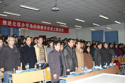张君安董事长讲话指出:在未来的五年内,我们要完成学士学位授权、高陵新校区建设、教育部验收考察评估三项重要工作。要求大家一要坚定不移的确保教学工作的中心地位,全员树立教学优先,服务教学的意识。二要坚定不移的做好三资队伍建设,特别是师资队伍建设,三要坚定不移的改善办学条件,特别是实践教学条件。