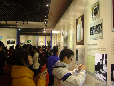 在钱学森回国后第一份手稿《导弹概论》前,在钱学森一家四口在归国轮船上的照片前,在泛黄了的钱学森上海交大学习时的水力学考卷前,在钱学森归国多年后返校和北师大附中老师的合影前,师生们不时驻足,认真观看。一张张珍贵的图片、实物和影像资料,一个个感人的事迹,无不让参观师生对钱学森的科学成就、治学精神、高尚道德和爱国情怀表示深深的敬意。