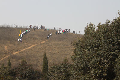 植树现场呈现出一派热火朝天的景象,学生们、老师们纷纷拿起铁锨、锄头,栽下了一棵棵树苗,植树结束后,同学们还进行了爬山比赛和“寻宝”活动。