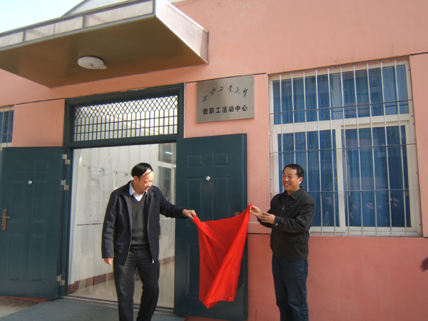 赛云秀书记、张君安副校长首先为教职工(老年)活动中心揭牌,霎时,礼炮齐鸣。随后赛云秀同志讲话说:去年,学校各项工作取得了很大成绩,一是学校被确定为博士授权立项建设单位,二是学校成功获得国家级教学成果二等奖1项,实现学校历史上零的突破,三是学校获批国家地方联合“精密与超精密加工及测量工程研究中心”,结束了我校没有国家级研究基地的历史。这些成绩的取得离不开离退休老同志的关心和支持。学校在财力紧张的情况下,投入30余万元修建教职工(老年)活动中心,使离退休老同志有了一个学习、休闲的场所,这也是学习实践科学发展观活动中整改落实的重要内容之一。今后,随着学校的发展,还要逐步改善离退休老同志的生活待遇和活动场所,使离退休老同志能安享晚年。