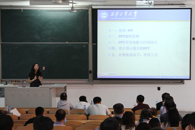 培训由计算机学院刘萍萍老师主讲,她从多媒体课件制作入手,讲解了PowerPoint课件的编辑技巧,在课件中插入多媒体对象等内容。刘老师的讲解深入浅出,并实例演示了PowerPoint课件的制作技巧。