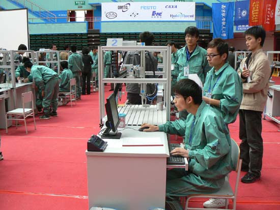 (本网讯)由高教司主办、大连理工大学承办的全国大学生工程训练综合能力竞赛首届竞赛于10月17日至19日在大连理工大学刘长春体育馆和工程训练中心进行。来自全国各地的国家级综合工程训练示范中心的33所院校和部分省级工程训练示范中心的25所院校总计58个代表队参加了竞赛。经过两天紧张激烈的角逐,由西安工大工业中心制造工程师实验班的代海、张超、崔雷明同学组成的代表队,获得总决赛二等奖。