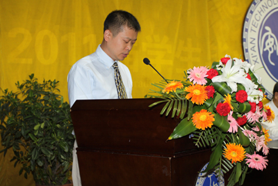 计算机学院梁向阳副教授代表受表彰的优秀教师代表发言,他简要交流了自己作为一名高校教师的成长经历和工作中取得的经验,并表示会再接再厉,在教书育人和科研工作中再创佳绩。