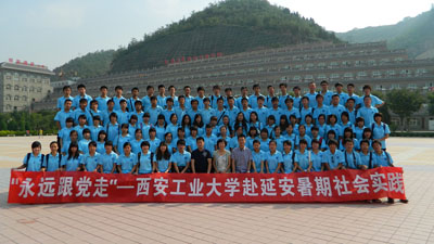 (本网讯)7月10日-12日,在建党90周年之际,按照学校创先争优工作安排以及学校2011年暑期社会实践工作部署,校团委组织全校107名学生,赴延安开展“永远跟党走”主题社会实践活动,引导学生学习党的优良传统,传承红色革命精神。