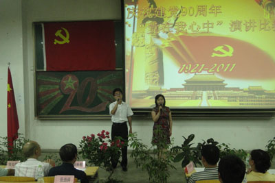 比赛伴着《国际歌》拉开帷幕,主持人介绍了本次活动的评分标准、到场评委和嘉宾之后,比赛以光电系选手张铭的诗朗诵《你一定会伟大坚强》开场,诗歌带我们走进历史的长河。教工组杨杰老师的《铭记党史 感恩今天》带我们回顾了祖国五千年上下的文明,近代的屈辱史,发展史;管系选手林晓燕《我爱这土地》让我们看到赤子们对祖国的依恋;艺术设计系的合唱《国家》,用手语传递着:祖国就是家;《党旗党魂》,李燕老师激昂的演讲将比赛推向高潮;李源阳同学《中国人不跪的人》,表明了我们当代青年要为祖国奉献的决心;比赛在陈博、赵来鹏老师的合唱《祖国万岁》中落下帷幕。