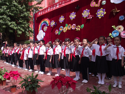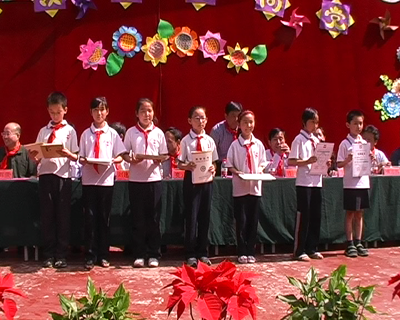 鲜花簇拥,鼓号声声,美丽的校园沉浸在节日的欢乐之中。在整齐、嘹亮的队歌声中,庆祝活动拉开了帷幕。首先,附中校长韩干校发表了热情洋溢的讲话。他介绍了附小一年来教育、教学、科研、尤其是青少年科技创新活动中取得的优异成绩,真诚感谢关心、支持附小发展的大学领导、各界朋友及各位家长。接着,附中书记王文芳宣读了“六一”表彰决定,校领导向获奖教师和学生颁发证书,希望他们再接再厉,不断进步。