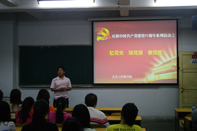 (本网讯)为庆祝中国共产党建党90周年,巩固创先争优活动的成果,5月31日,艺术学院组织全体党员分别在金花、未央两个校区,开展了以“忆党史、铭党恩、强党性”为主题的展示活动。