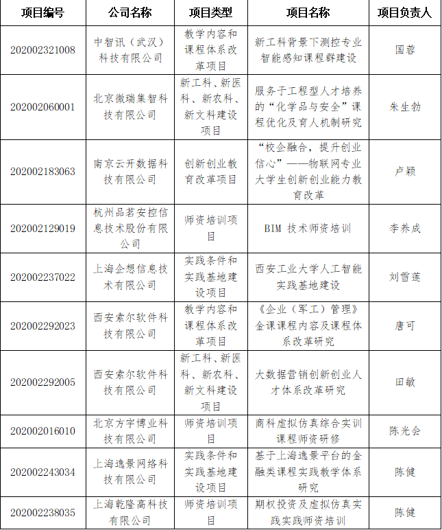 (本网讯)近日,根据《教育部高等教育司关于公布2020年产学合作协同育人项目立项名单(第一批)的通知》(教高司函[2021]3号),我校共计获批10项教育部产学合作协同育人项目。