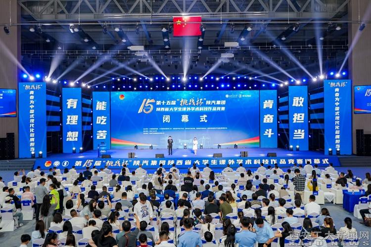 (本网讯)5月24日下午,由共青团陕西省委、中共陕西省委教育工委、陕西省科学技术协会、陕西省社会科学院、陕西省学生联合会、陕西省西咸新区开发建设管理委员会联合主办,我校承办的第十五届“挑战杯”陕汽集团陕西省大学生课外学术科技作品竞赛闭幕式暨颁奖仪式在未央校区隆重举行。共青团陕西省委书记徐永胜,我校党委书记侯成义,党委副书记马福,陕西省社会科学院党组成员、副院长王建康,陕西省科学技术协会二级巡视员曹文举,陕西汽车控股集团有限公司副总经理刘科强,共青团陕西省委副书记刘洋,陕西省学联主席常凇瀚出席闭幕式。西北工业大学党委副书记、副校长詹浩,西安科技大学党委副书记陈春林,西安财经大学党委副书记李国武等兄弟高校领导,团委负责人、参赛学生代表等共计2600余人参加会议。