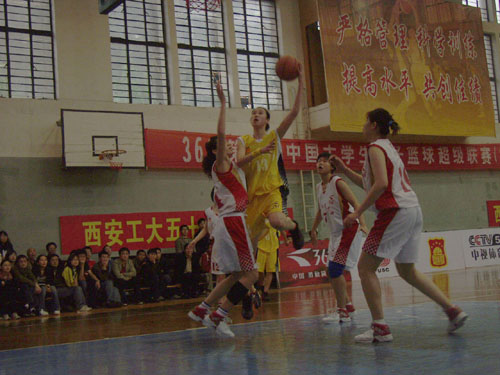 今天将迎战北方赛区第一阶段的最后一支队伍——青海师范大学。青海师范大学是第二届中国大学生女子篮球超级联赛的冠军队伍,是一个很强的竞争对手,为此,西安工大领队和教练员精心准备了这场比赛的战术安排。