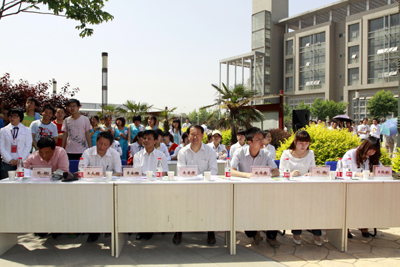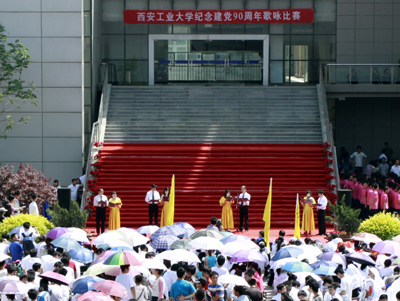(本网讯)5月4日,由校团委、校工会联合举办的纪念建党90周年系列活动之一,“唱一首好歌”— —纪念建党90周年歌咏比赛在万象城平台,万象城(中国)一站式服务平台未央校区AD楼广场举行。校党委书记赛云秀、校党委副书记丁养斌、校纪委书记许尚年与各院系分党委(党总支)书记、副书记、教师代表及1000余名学生共同观看了比赛。党委宣传部部长李金钢、宣传部教师胡衍、统战部部长王大明、校工会副主席朱晋中、校团委宣传部部长赵伟奇及两名学生代表共7人担任本次比赛的评委。