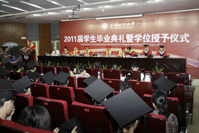 在2011届毕业生即将告别母校,满怀希望踏上新的人生里程之际,党委书记赛云秀代表学校向3881名毕业生表示最热烈的祝贺,向为同学们成长付出辛勤劳动的老师和职工表示最诚挚的敬意。赛书记与全体毕业生一起回顾了四年来学校的发展变迁,他对全体毕业生同学提出殷切期望,希望同学们牢记把勤奋学习作为人生进步的重要阶梯,努力提高创新思维能力;积极投身社会实践,在基层一线砥砺品质,增长才干;坚持德才兼备、正确处理个人、集体、社会的关系;彰显本色,全面发展,努力成为可堪大用、能负重任的栋梁之材。同时,赛书记希望同学们终身牢记和践行“敦德励学,知行相长”的校训、秉承和发扬“忠诚进取,精工博艺”的办学特色,做一个对社会有用的人才。最后,赛书记祝全体毕业生同学鹏程万里,前程似锦。