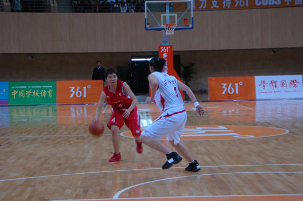 第一节开始,中南财经政法大学12号袁梦璐快速突破上篮,首得两分。紧接着西工大4号姜作爽得到了发球的机会,连进两球,拉回比分。双方战况激烈,难分胜负,前4分钟的比赛中一直以2:2持平。僵持中,西工大突然加快了速度,连续几个突破上篮迅速拉开了比分,紧接着11号李煊接球,转身,远投三分命中。中南财法不甘示弱,猛追猛打,积极拼抢,突破跳投,奋力追回比分。最终,西工大以23:22中南财政,结束了本节比赛。