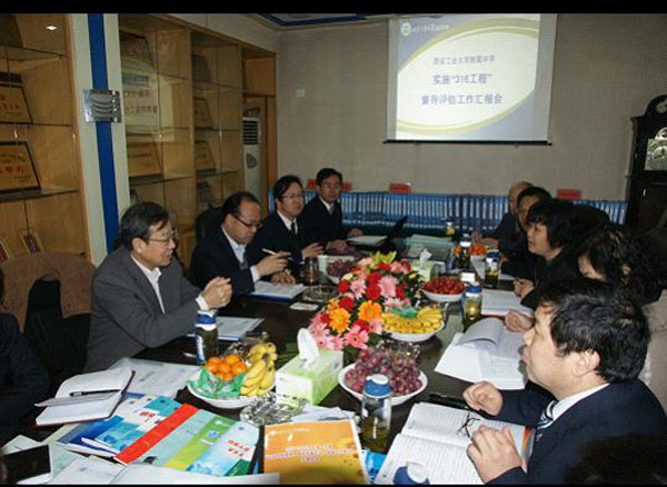 此次督导评估分为校长汇报、听课、查看资料和召开座谈会等环节。附中校长韩干校向专家组从学校的办学方向、办学经费、办学条件、教师队伍建设、学校管理与附中教育教学质量等六个方面汇报了附中的总体情况和近年来学校在教育教学中取得的成绩。专家组成员按照“316”工程指标体系通过听、看、查、询、访等方式进行全面检查。他们对学校领导进行了现场咨问;查阅各种资料166卷,深入课堂听课;查阅教师教案70 本,查阅学生作业1065 本;实地查看了校园校舍、设施设备、各类部室及使用管理情况,并分别召开教师、家长、学生座谈会及问卷调查。