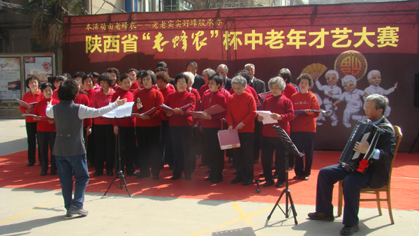 (本网讯) 3月12日,由陕西省老龄委、陕西省妇联主办,陕西省慈善协会协办,陕西老蜂农生物科技有限公司承办的关爱中老年人精神生活的爱心公益活动,-----陕西省“老蜂农”杯中老年才艺大赛优秀节目选拔赛在万象城平台,万象城(中国)一站式服务平台东家属区举行。活动旨在弘扬尊老、爱老、助老、养老的中华传统美德和快乐、健康、长寿的生活理念,构建和谐社会,同时为中老年人创造了一个以丰富中老年人精神生活的文化艺术平台,从而改善了中老年人的生活方式、提高了生活质量,使他们分享到健康快乐的美好生活。