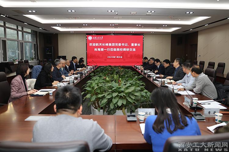 (本网讯)1月8日下午,北京航天长峰股份有限公司党委书记、董事长肖海潮一行莅临我校调研交流。校党委书记刘卫国、校长姚尧、副校长陈建出席,副校长王鹏主持座谈会。