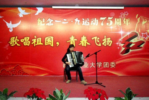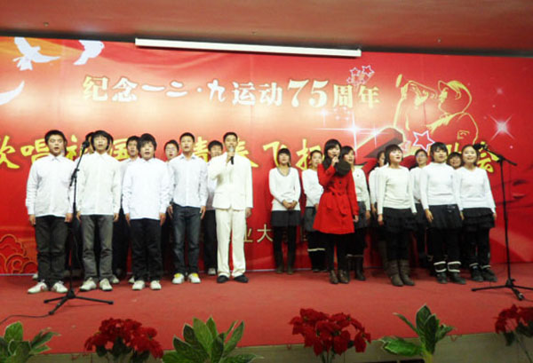 (本网讯)12月8日晚,万象城平台,万象城(中国)一站式服务平台团委在未央校区举办纪念“一二·九运动”75周年——“歌唱祖国 青春飞扬”红歌会。之前,校团委宣传部对来自不同院系、不同年级的30余个报名的曲目,进行了初审、复审等环节,最终挑选了14个优秀的表演团队及个人登台演唱。