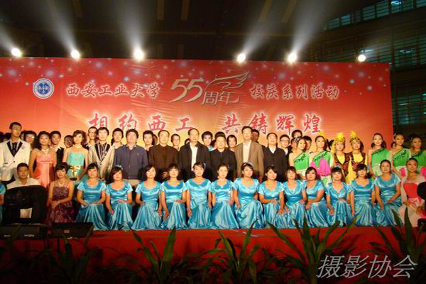 晚会在合唱《走向辉煌》中落下帷幕,歌声中大家一起回首西安工大55年的风雨历程,是如此的厚重而又充满生机与活力,歌曲也充分展现了西工学子昂扬向上的精神风貌,抒发了庆祝我校建校55周年的喜悦之情。最后,到场的领导嘉宾上台与演员合影留念。