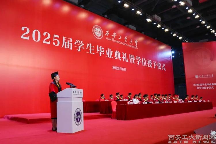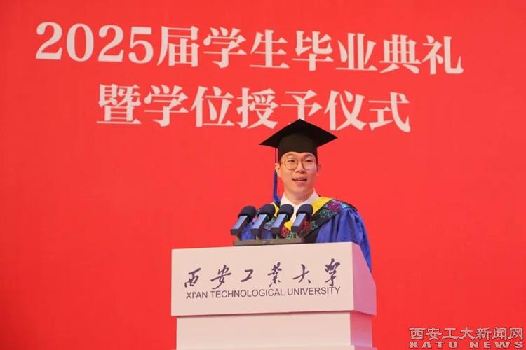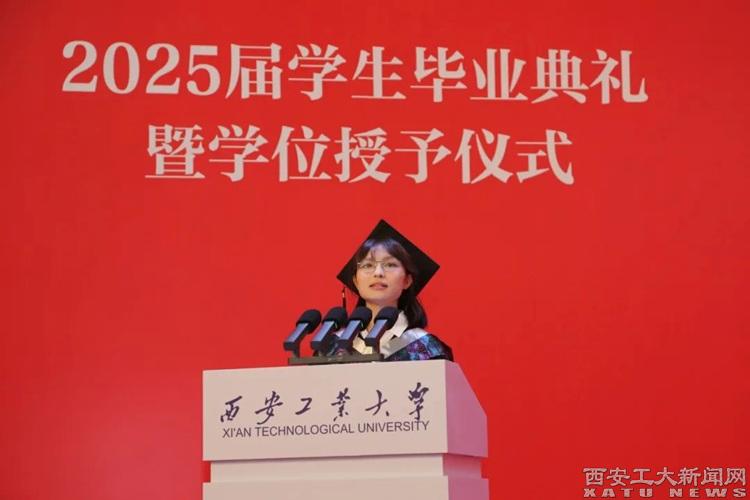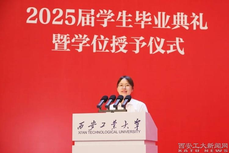 本科毕业生代表贠欣欣同学发言:未来,无论是在基层一线践行服务初心,还是在科技创新中勇攀高峰,亦或在国际舞台发出中国声音,我们都将以西工精神为帆,以青春使命为舵,既有“会当水击三千里”的豪迈,更守“一片冰心在玉壶”的纯粹,让青春在时代的星河中闪耀母校的独特光芒。