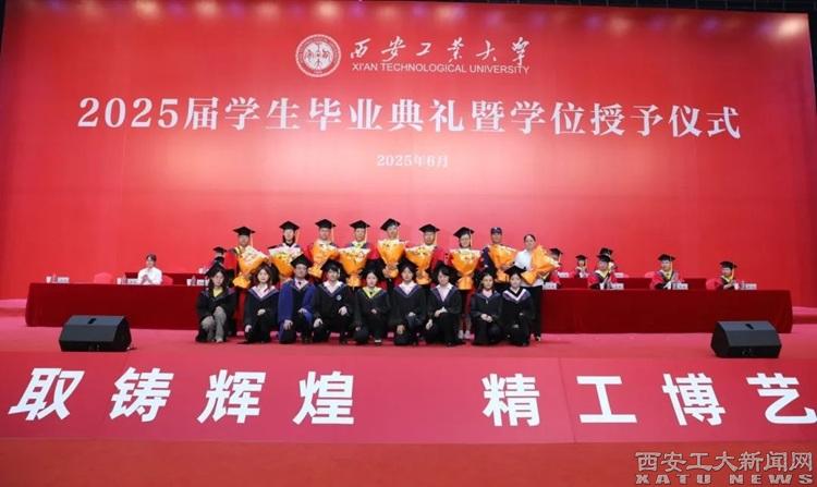 校长姚尧为毕业生代表授予学位并合影留念。