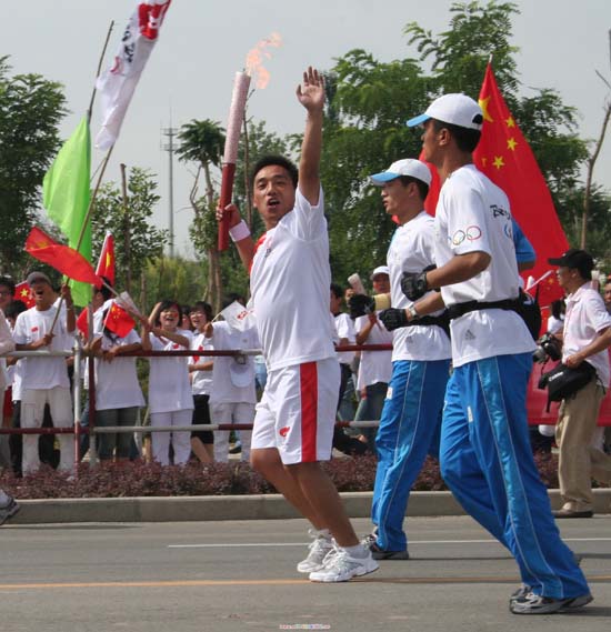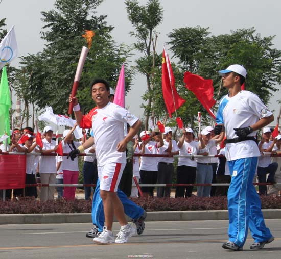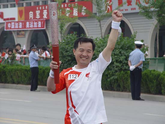 7月2日上午,奥运圣火陕西境内接力传递活动在延安市拉开序幕。传递路线全长6、3公里,共有208名火炬手。李建平教授意气风发地跑完了第112棒。