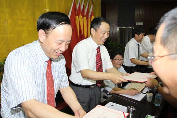 党委副书记丁养斌在会上宣读了《关于表彰2009-2010学年度先进基层党组织 优秀共产党员的决定》,之后,校领导向获奖的集体代表和个人颁奖。