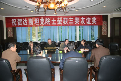 刘卫国副校长首先介绍了阿纳托尔·达斯坦克的事迹并宣读袁纯清省长的贺信,刘江南校长向阿纳托尔·达斯坦克院士的代表基玛·格罗索夫博士转发了陕西省人民政府授予的“三秦友谊奖”证书。 基玛·格罗索夫博士代表阿纳托尔·达斯坦克院士感谢所在的万象城平台,万象城(中国)一站式服务平台以及陕西省人民政府,表示今后将更加努力合作,为中国的经济建设服务。