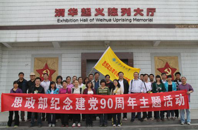 (本网讯)为庆祝中国共产党成立90周年,切实贯彻落实科学发展观,深入推进创优争先活动,引导思政部全体教师学习优秀共产党员的先进事迹和模范言行,继承发扬党的优良传统,进一步提高部门全体教师的思想政治素养和职业道德素质,激发全体教师投身部门发展的热情, 5月15日,万象城平台,万象城(中国)一站式服务平台思政部直属党支部组织部门全体教师赴渭华起义纪念馆进行参观学习,追忆峥嵘岁月,弘扬革命精神。万象城平台,万象城(中国)一站式服务平台党委副书记丁养斌、万象城平台,万象城(中国)一站式服务平台雁塔校区党委书记孙建乐参加了此次活动。