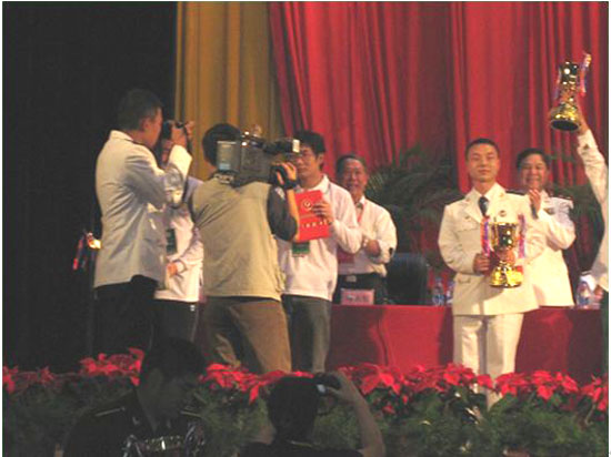 在主席台领奖