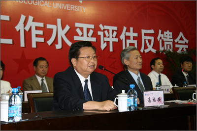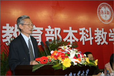 专家组组长刘光栋教授首先通报了专家组的考察概况,并代表教育部专家组宣读了对我校的评估考察意见。考察意见从整体印象、取得的成绩、办学特色和存在的问题四个方面客观公正地评价了我校的本科教学工作,充分肯定了学校近几年教育教学所取得的成绩。他指出:1.学校办学指导思想和办学定位正确,始终把本科教学放在中心地位;2.重视师资队伍建设,将教师队伍建设放在优先发展的地位;3.近几年学校加大教学投入,办学经费逐年增加,办学设施不断完善;4.深入开展教育教学改革,促进专业课群建设,取得了较为显著的成绩;5.加强教育教学管理,健全质量监控体系,形成了一套较完善的教学管理制度;6.重视学生综合素质的培养。