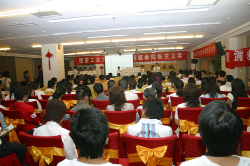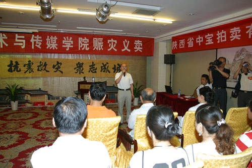 西安工大以“团结、抗震、献爱心”为主题的义卖活动,共收到师生作品百余幅。其中艺术与传媒学院于唯德院长在参与了我省近期各种团体、组织的一系列赈灾义卖活动之后,又为此精心准备了书法作品。常栓怀、郑墨泉、韩钧、傅如明、雷雨、高有宏、张斌、赵海龙等老师都为义卖活动献上佳作。书法专业的近百名学生积极参与,将自己对地震灾区人民的关切之情融于笔端,倾泻于宣纸之上。