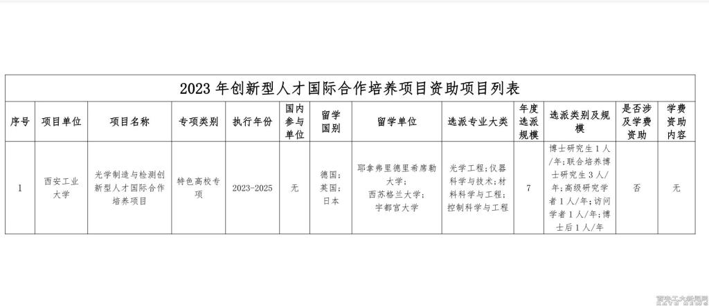 (本网讯)近日,国家留学基金委于公布了2023年创新型人才国际合作培养项目立项名单。我校刘卫国教授主持申报的“光学制造与检测创新型人才国际合作培养项目”成功获批。