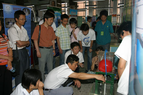 (本网讯)第三届全国大学生机械创新设计大赛陕西赛区比赛5月31日至6月1日在我校举行。围绕本届大赛“绿色与环境”的主题,来自我校及西安交通大学等全省20余所高校110余件作品,在为期两天的比赛中一一亮相,进行现场演示并接受专家及评委的考评。