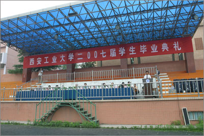 (本网讯)7月4日上午,我校在本部和雁塔校区隆重召开了2007届学生毕业典礼。党委书记赛云秀、校长刘江南、党委副书记简林根、丁养斌、校工会主席徐雪芹、校长助理陈桦及校办、学生处、教务处、团委、各院系领导出席了毕业典礼。