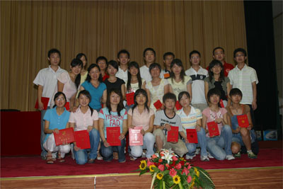 党委副书记丁养斌首先宣读了2007年毕业班“三好、优干”评比表彰决定;教务处处长范新会公布了2007年本科毕业生学位授予情况和专科生毕业情况;学生处处长任慧英宣布了2007年毕业生捐书活动和征文活动情况并对2007年西部志愿者和到边远地区就业的毕业生进行了通报表彰。大会在激昂的进行曲中为获奖毕业生和获奖单位颁发奖品和证书。随后教师代表数理系袁庆生老师和毕业生代表电信学院朱博同学分别作了饱含期望和充满激情的发言。