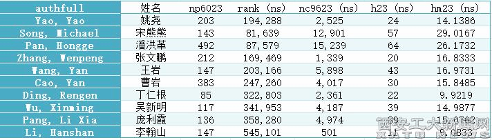 注:np6023:1960-2023年发文总量;rank (ns):他引排名;nc9623 (ns):1996-2023年他引次数;h23 (ns):2023年h指数(他引);hm23 (ns):2023年hm指数(他引)