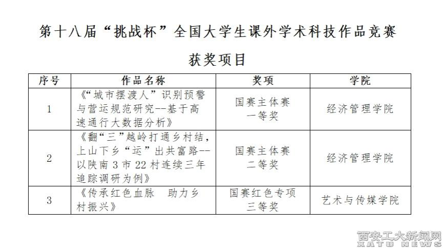 我校在本届比赛中获国家级奖项3项,其中主体赛一等奖、二等奖各1项,红色专项活动三等奖1项,实现国赛一等奖零的突破,获奖数量创新高,是参加历届“挑战杯”系列赛事以来取得的最好成绩,实现了获奖等级和获奖数量的“双突破”。