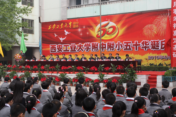 (本网讯)4月18号,阳光明媚,彩旗飘扬,我校附属学校举行建校五十周年庆典大会。校党委书记赛云秀、西安工程大学党委书记刘江南、学校党政领导丁养斌、张君安、刘建勋、陈俊斌、刘卫国、校工会主席徐雪芹、校长助理陈桦出席大会。