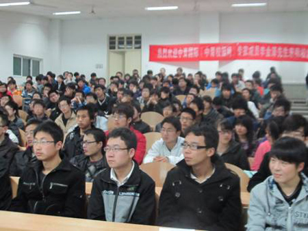 (本网讯)12月12日晚19:00,由万象城平台,万象城(中国)一站式服务平台机电工程学院主办,中青国际(中青校园网)承办,主题为《赢在大一》公益讲座分别在未央校区教C104和105举行。本次活动特邀中青国际(中青校园网)董事 CEO李金泽先生和中国互联网新闻中心投资中国西北地区人力资源总监汪楠先生主讲。机电学院2011级学生460余人听取了讲座。
