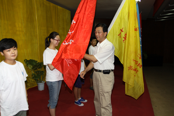 最后丁养斌副书记向10支实践队授旗,伴随着挥舞的旗帜和热烈的掌声,会场中的气氛达到高潮,同学们挥舞着实践队旗,整装待发,踏上社会实践的征程。